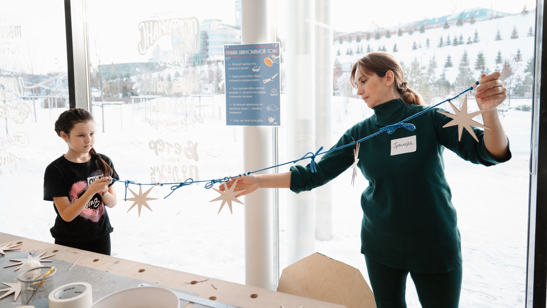Будем продумывать дизайн и цветовую гамму для разных новогодних элементов из дерева, покрасим их, и каждый участник соберет свою уникальную гирлянду, чтобы украсить дом или елку к Новому году.